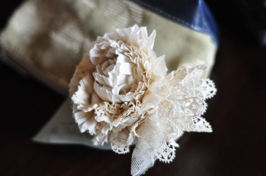 Turn a vintage wedding dress into Flower Pins for a Bridal Shower