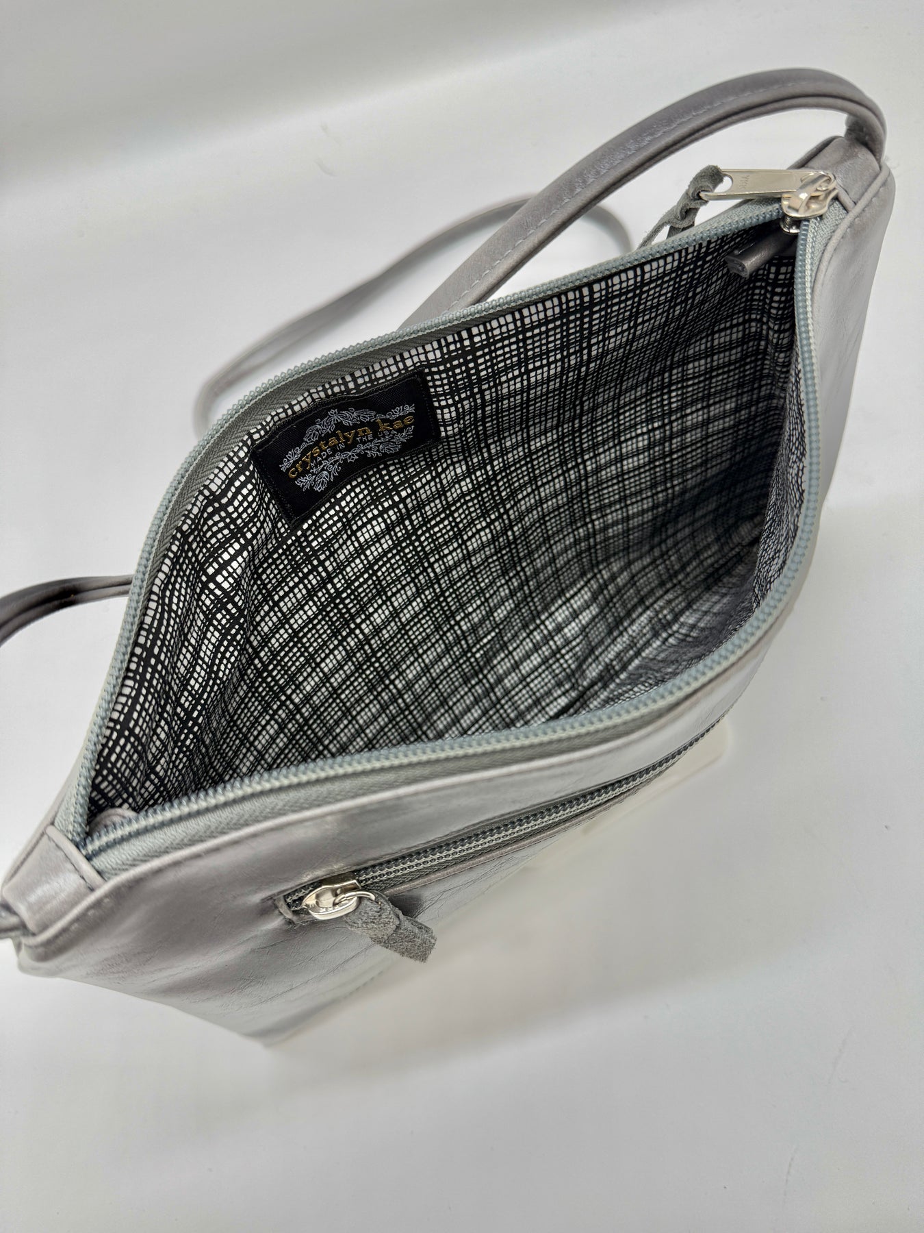 Grey Bossa Nova Crossbody Bag – Lightweight coated canvas with reclaimed FABSCRAP lining. Water-resistant, and made to look better with every wear.